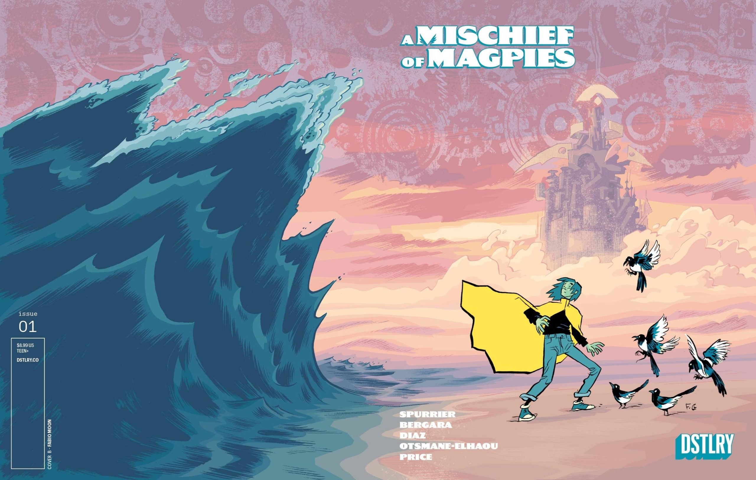 NEW DSTLRY SERIES DEBUT FROM SIMON SPURRIER AND MATAS BERGARA!A Mar has a secret. Sometimes, without warning, he falls out of the world. This would be an inconvenience if his life wasn't already such a drag. When he's gone, he finds himself in an extraordinary city. A city which is also a machine, endlessly crossing a shoreless ocean. A city of two halves: the bright, bustling spires above the waves, and the beast-haunted twilight halls below. And between, clowning along the rusting beach, a troupe of anarchic magpies with all the answers but none of the questions. Recipients of the Angoulme Slection Officielle, GLAAD Award, and multiple Eisner Award nominations, creators Simon Spurrier and Matas Bergara present a new fantasy masterpiece in the tradition of Coda and Step By Bloody Step, driving the comics medium into new, beautiful, baleful waters. Every issue from DSTLRY is presented in our perfect bound Prestige format, featuring wraparound covers with spot gloss on robust cover stock, complemented by 48 pages of exquisite interior stock. It's the DSTLRY difference. For fans of THE NEVERENDING STORY, ARCANE, and THE BOY AND THE HERON.